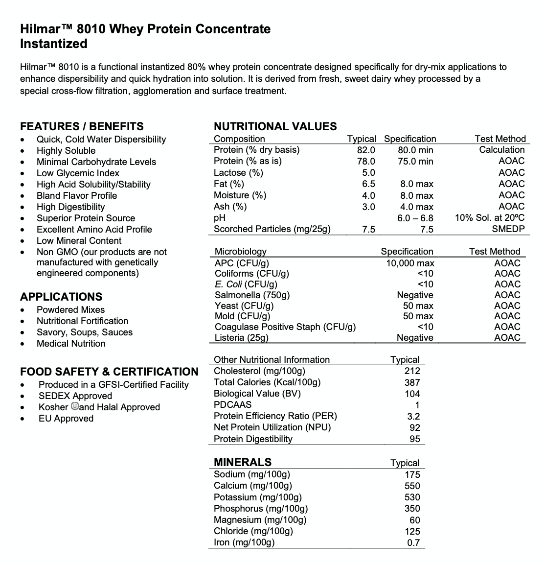 HILMAR instantized whey protein concentrate is guaranteed to be the freshest and purest protein available