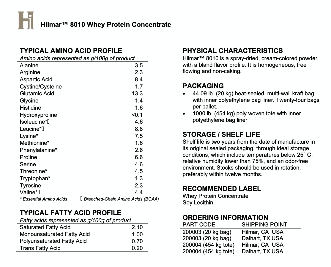 HILMAR uses only 100% non-denatured whey protein concentrate with absolutely no acid treated whey.